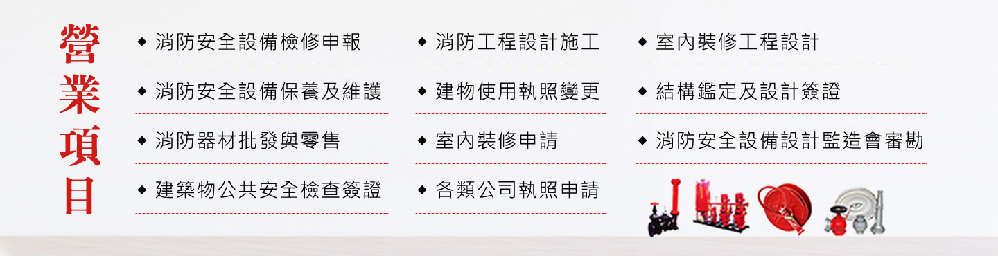 三、消防工程:消防工程設計與施工、消防工程規劃、消防申報申請